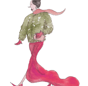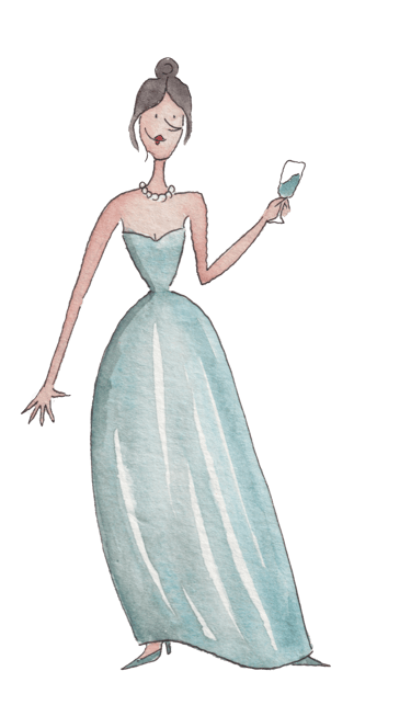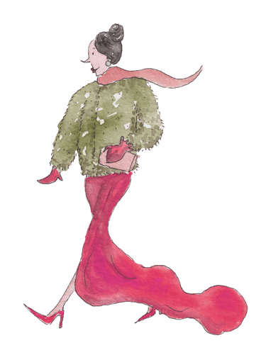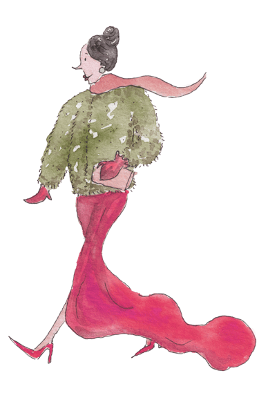 Vestido longo e salto.